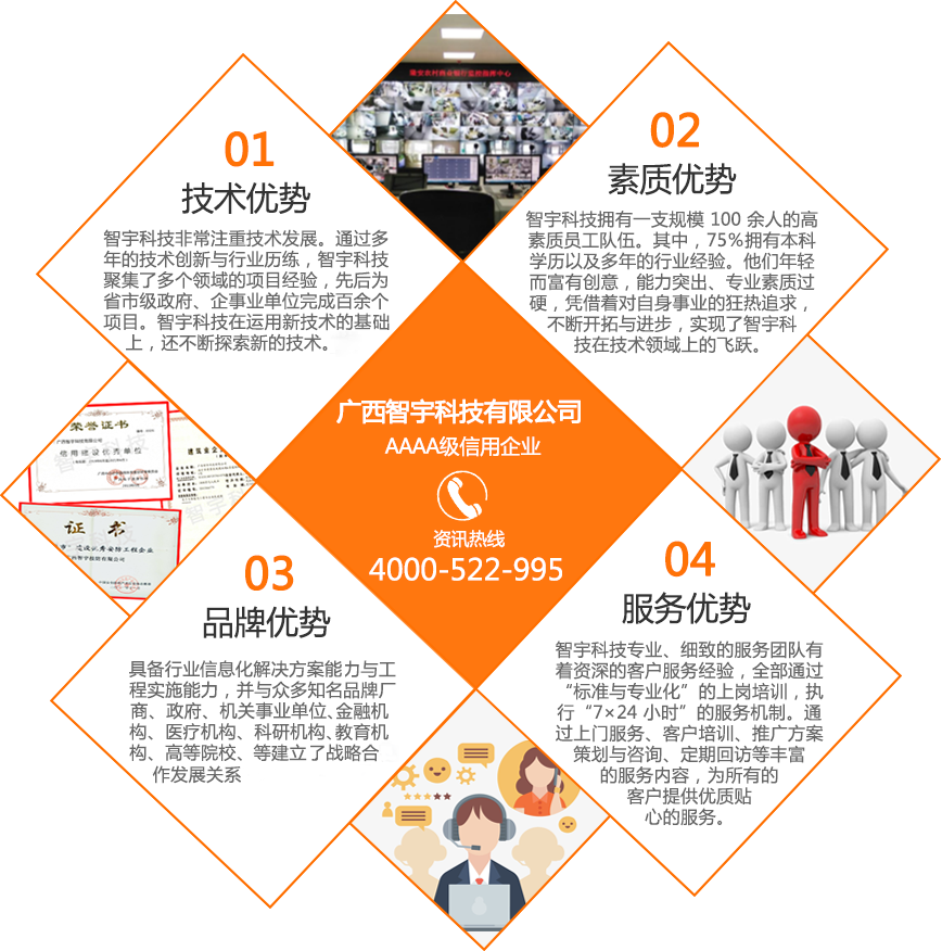廣西智宇科技有限公司,自1995年成立以來,已發(fā)展成為一家高新技術(shù)企業(yè),擁有多家分公司,遍布南寧、桂林、玉林、河池、扶綏、百色、欽州、防城港等地。憑借30年的專業(yè)經(jīng)驗(yàn)和技術(shù)儲(chǔ)備,智宇科技已成為一家行業(yè)領(lǐng)先的集團(tuán)企業(yè),致力于運(yùn)用前沿科技產(chǎn)品和技術(shù),為客戶提供高效服務(wù)。